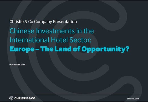 Christie & Co's Managing Director - International & Consultancy, Andreas Scriven had the pleasure of presenting at a Hotel Market Day hosted by leading hotels operator Pandox this week. In this presentation, he talks about Chinese investments in the international hotels sector, and whether investors from China see Europe as a land of opportunity.