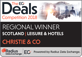 Specialist business property adviser, Christie & Co has won the award for the most active agent in Scotland, in the Leisure and Hotels category, as part of Estates Gazette’s EGi Deals Competition for the second year in a row. Ranked the top agent for the category in three regions overall, Christie & Co was also named the best performing in Wales and the South West for Leisure and Hotels.